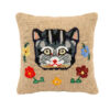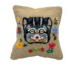 La collection des housses de coussin brodée à la main sur la jute des sacs utilisés pour le transport du café. Le fond brut peut laisser apparaitre la marque du producteur de café. Les housses ont un usage principalement décoratif sur un canapé ou un lit.