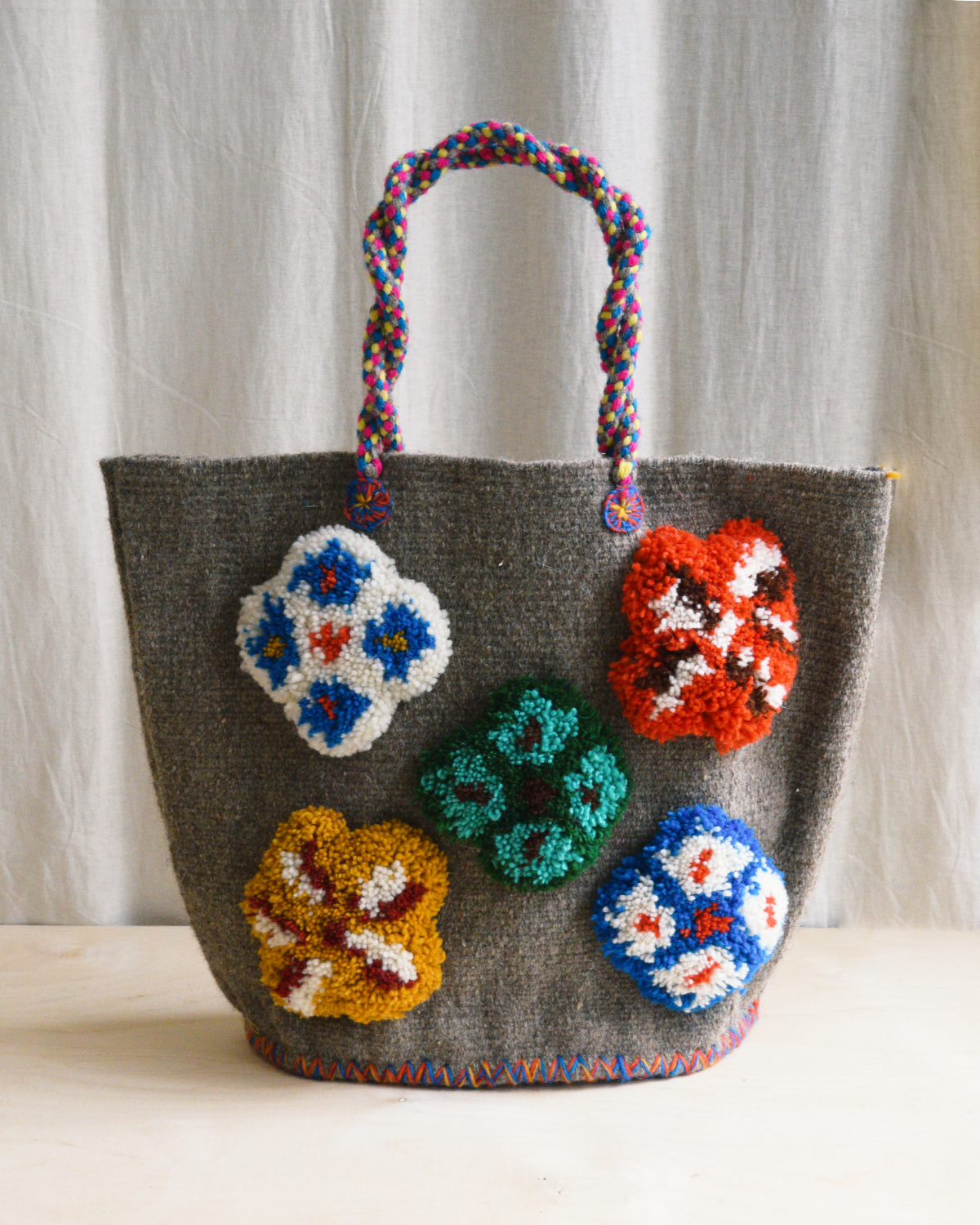 The medium handwoven wool tote with Nathalie Lété's small flower theme in raised relief.