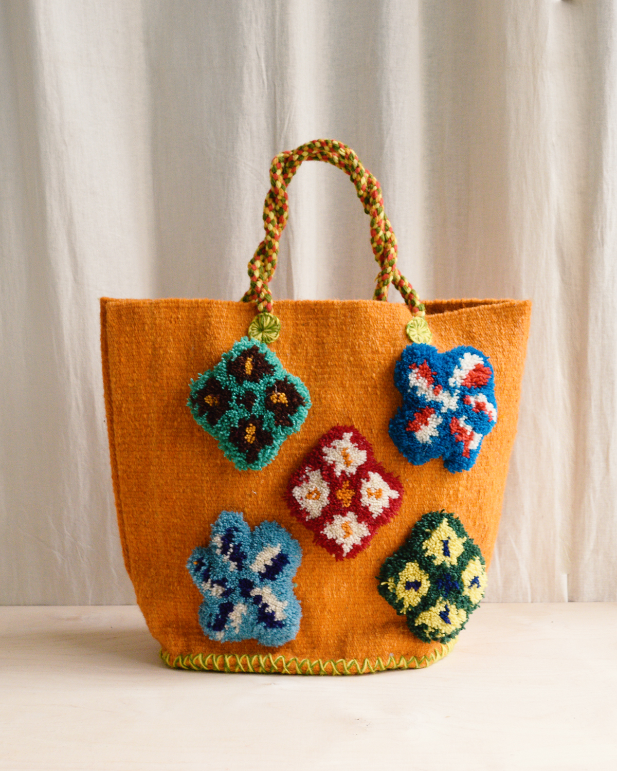 The medium handwoven wool tote with Nathalie Lété's small flower theme in raised relief.