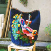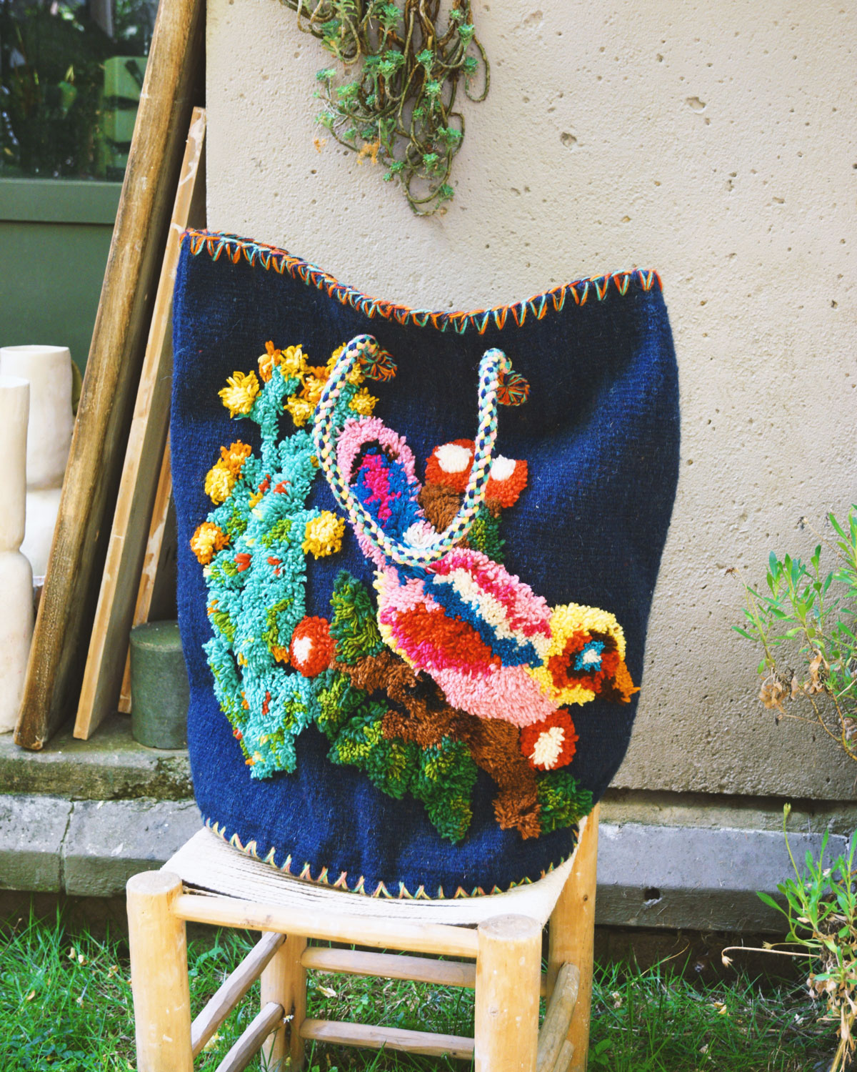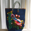 Large handwoven wool basket featuring Nathalie Lété's bird theme in raised relief. This basket is bordered at the top and bottom with a wool braid.
