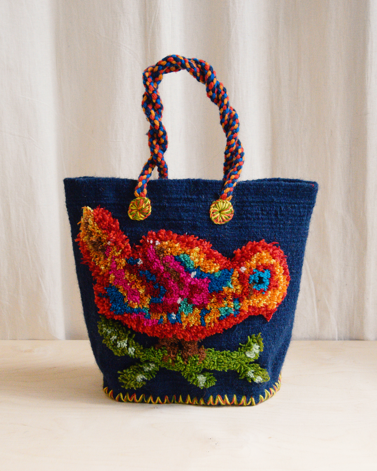 Handwoven wool basket featuring Nathalie Lété's fish motif in raised relief.