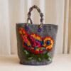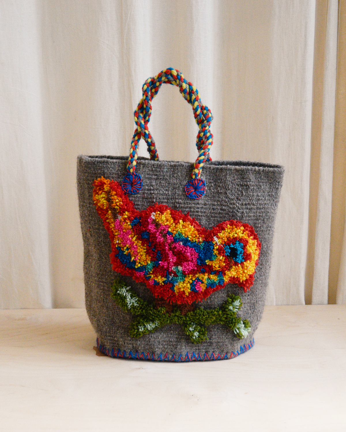 Handwoven wool basket featuring Nathalie Lété's fish motif in raised relief.
