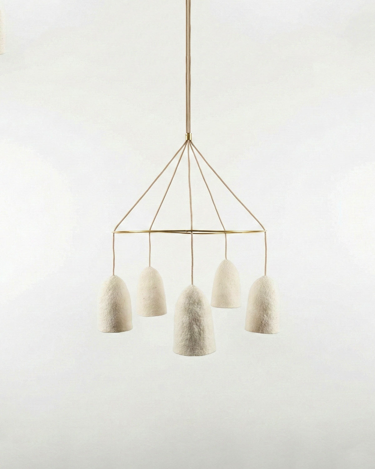 Idéal pour sublimer l’espace au-dessus d’une table, le mobile anneau « Q. » est une pièce faite à la main alliant la chaleur du feutre au raffinement d’une structure circulaire en laiton. Ses câbles textiles, réunis dans une rosace de 10 cm, sont livrés par défaut à une hauteur de 150 cm, que nous pouvons ajuster gratuitement jusqu’à 200 cm selon vos besoins (hauteur minimale conseillée : 45 cm), tandis que des longueurs spécifiques restent réalisables sur demande. Afin de garantir une livraison sécurisée, nos mobiles sont expédiés démontés ; nous vous invitons donc à consulter attentivement les instructions de montage avant l’ouverture du colis pour assurer une installation optimale.