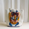 Wool basket entirely handwoven in Albania, featuring a cat motif by Nathalie Lété, knotted in relief and crafted using ancestral textile techniques preserved within artisan workshops. The natural wool is carefully selected for its exceptional quality, durability, and authentic feel.