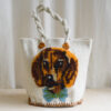 Wool basket entirely handwoven in Albania, featuring a dog motif by Nathalie Lété, knotted in relief and crafted using ancestral textile techniques preserved within artisan workshops. The natural wool is carefully selected for its exceptional quality, durability, and authentic feel.