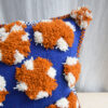 Les housses de coussin sont tissées à la main. Le thème est noué sur une base tissée à plat pour plus de relief. Inspirée par l’univers enchanté et les couleurs éclatantes de l’artiste Baya, chaque housse est une célébration du geste artisanal. La rencontre entre le relief du noué et l’héritage visuel de l’artiste rend chaque création singulière.
